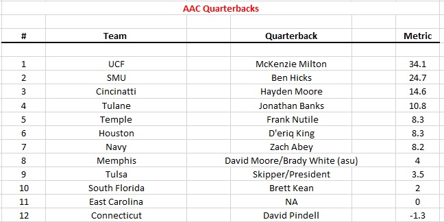 And – we define quarterback success by production – running or throwing. The best quarterback in our analytics may not necessarily be the best passer.